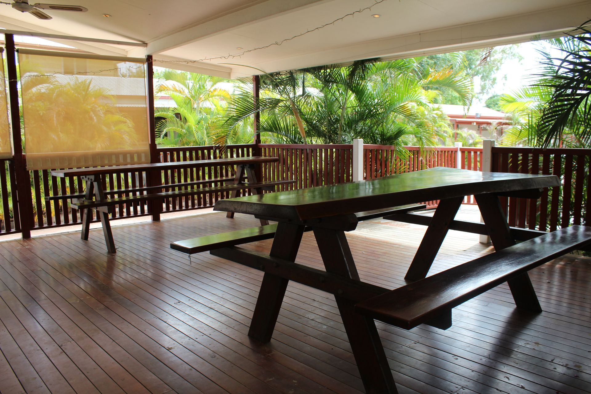 Yes, we have a BBQ area and two decks at the front of the hotel for dinner and functions.